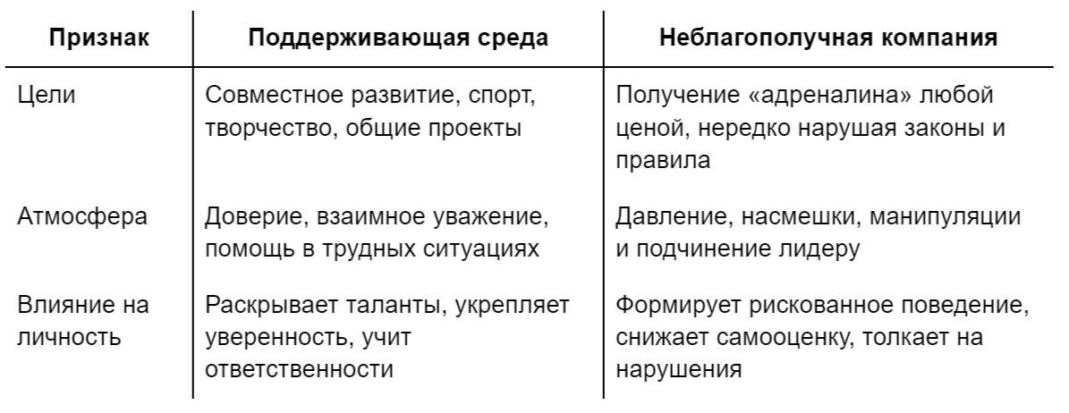 Многие рискованные поступки подростков — это не про «испорченность», а про поиск признания. Если он не получает его дома, то ищет во дворе, в тусовке или в интернете. Задача семьи — стать ресурсом поддержки, чтобы потребность не удовлетворялась за счет сомнительных компаний.