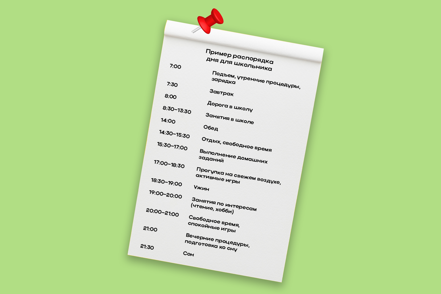 Установление режима дня