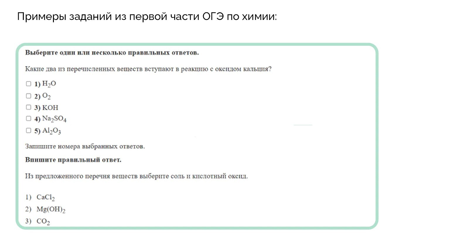 ОГЭ по химии проверяет знания курса 8–9 класса. Большая часть задач посвящена неорганической химии.