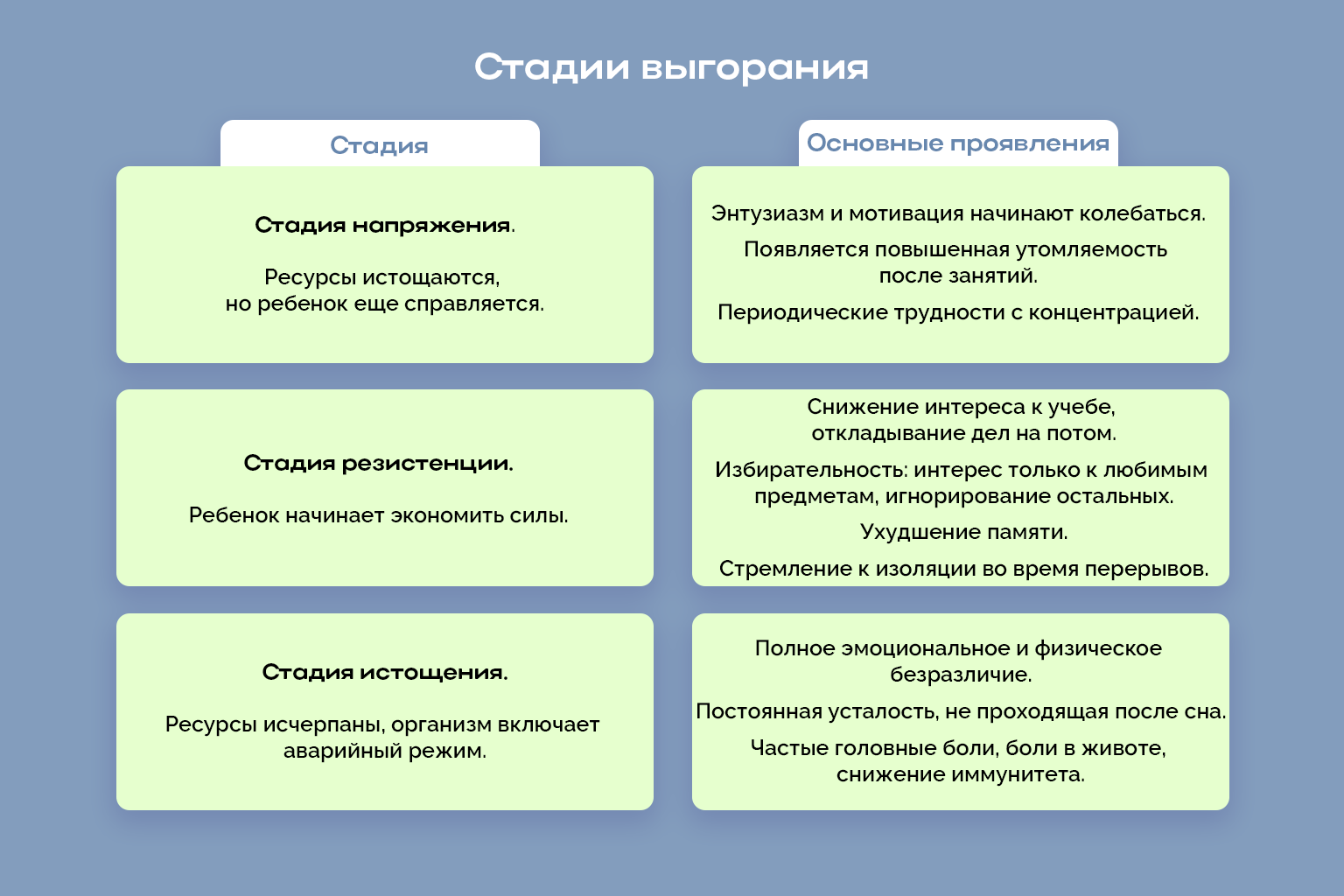 Выгорание у школьников — это не просто усталость, а полное эмоциональное, умственное и физическое истощение от длительных учебных нагрузок. Это состояние, когда обычный отдых не помогает восстановить силы.