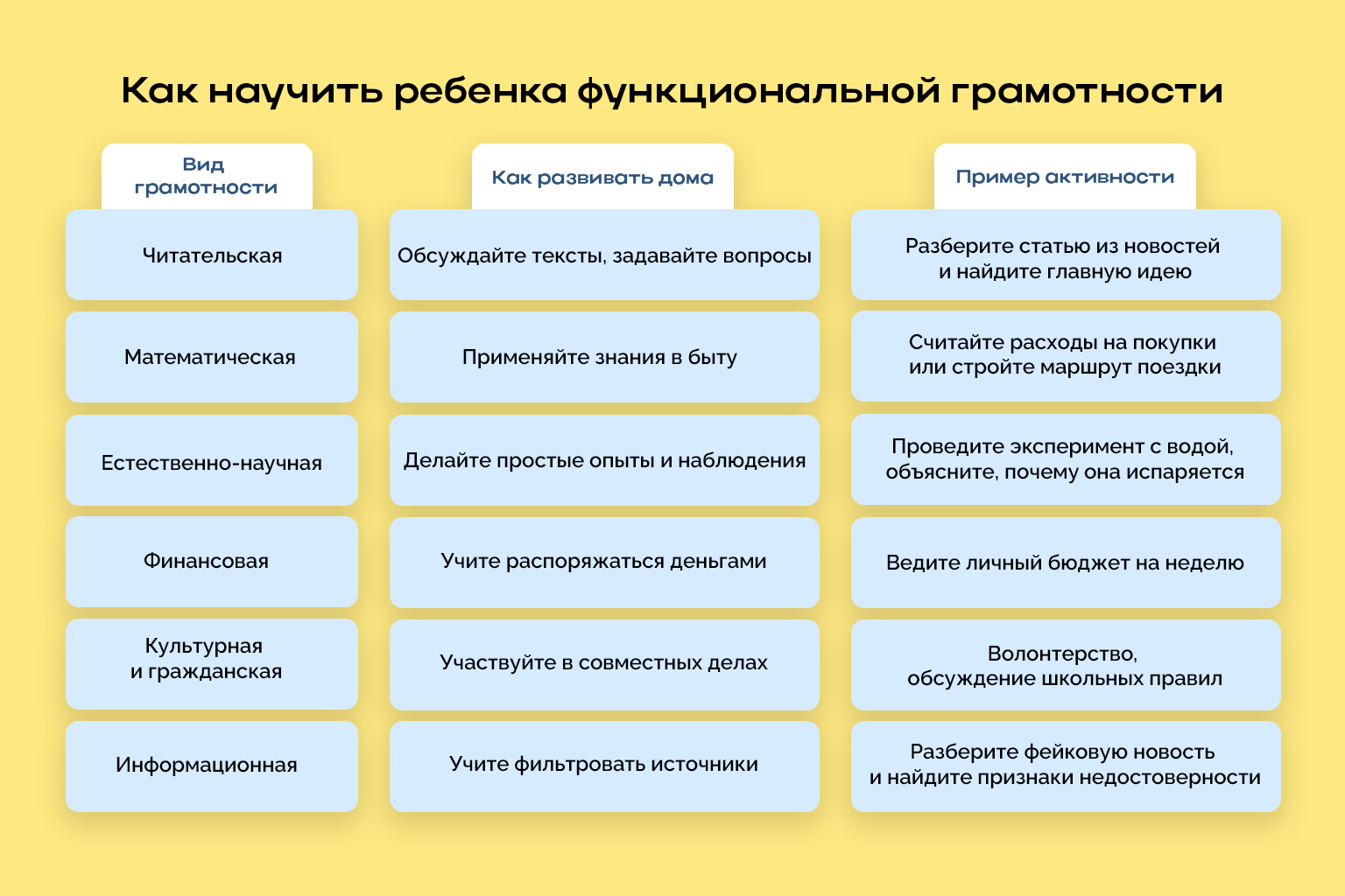 Развитие грамотности — постоянная работа с разными видами информации. Чтобы результат был ощутим, важно тренировать каждый компонент в обычных ситуациях.