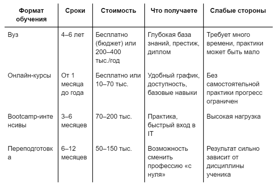 Если вы рассматриваете программирование как стратегию на долгие годы и хотите заложить фундамент для серьезной карьеры, то вуз остается классическим решением.