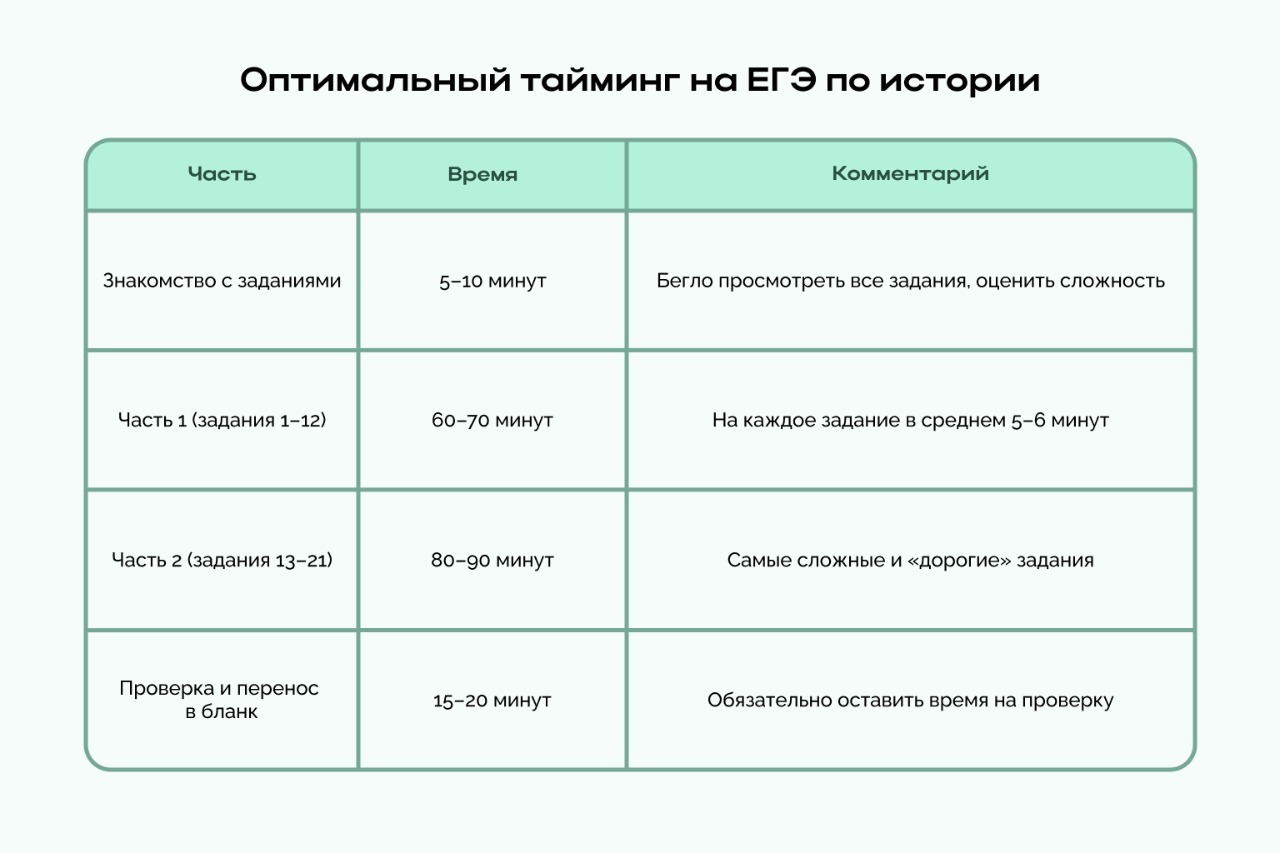 На ЕГЭ по истории дается 180 минут. При грамотном распределении этого времени хватит для выполнения всех заданий.