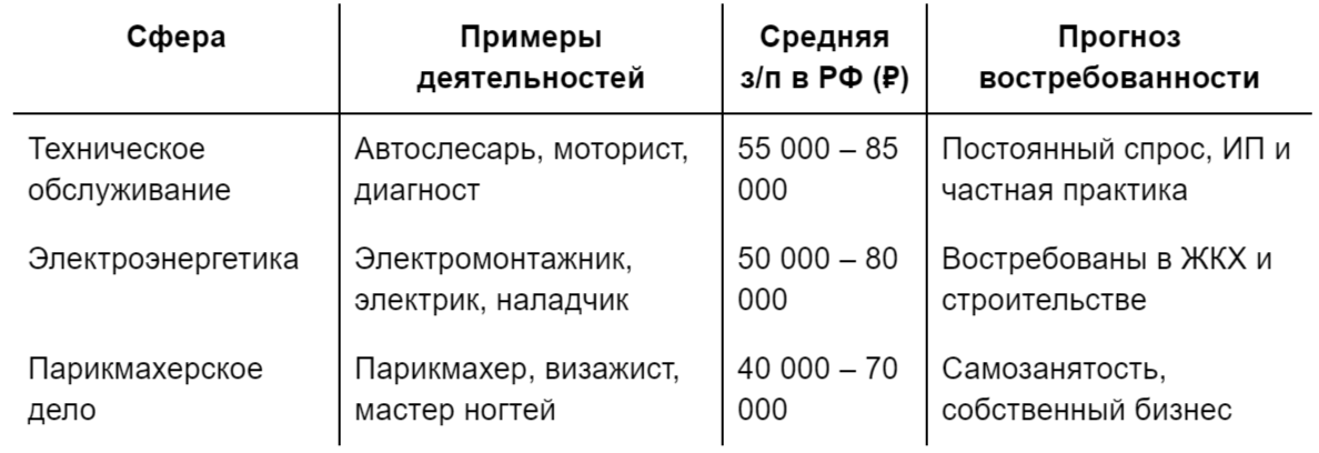 - Востребованные специальности на рынке ручного труда и обслуживания.