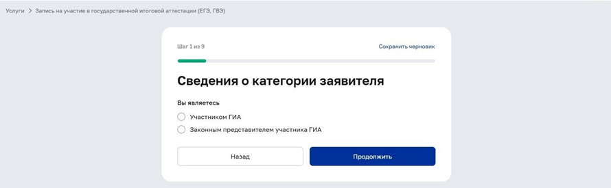 ● выберите, кем вы являетесь: участник ГИА или Родитель (законный представитель);