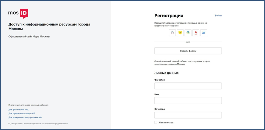 Зарегистрируйтесь на Портале https://www.mos.ru (если на нем еще нет личного кабинета):