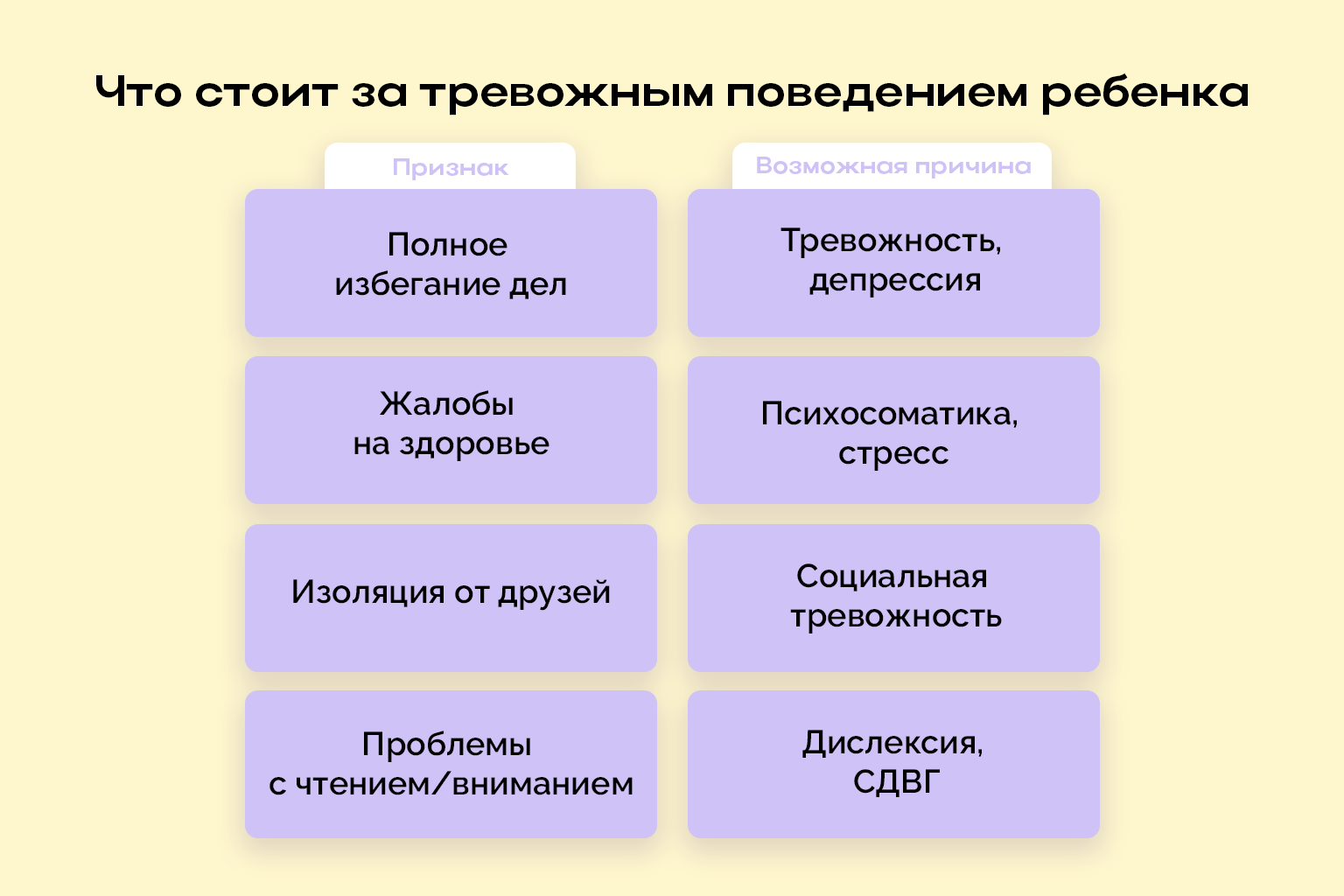 - Снижение концентрации. Трудно сосредоточиться на задачах, появляются слезы или раздражение при попытке читать или делать уроки. Это может указывать на СДВГ (у 5–7% детей) или дислексию (до 10%).