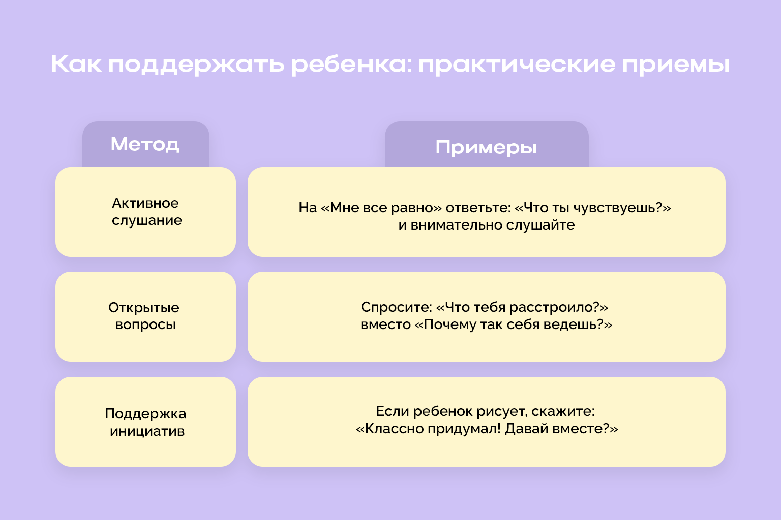 Совет. Находите 5 минут, чтобы поговорить о прошедшем дне — не о делах, а о чувствах. Такой ритуал учит осознавать эмоции и не бояться их выражать.
