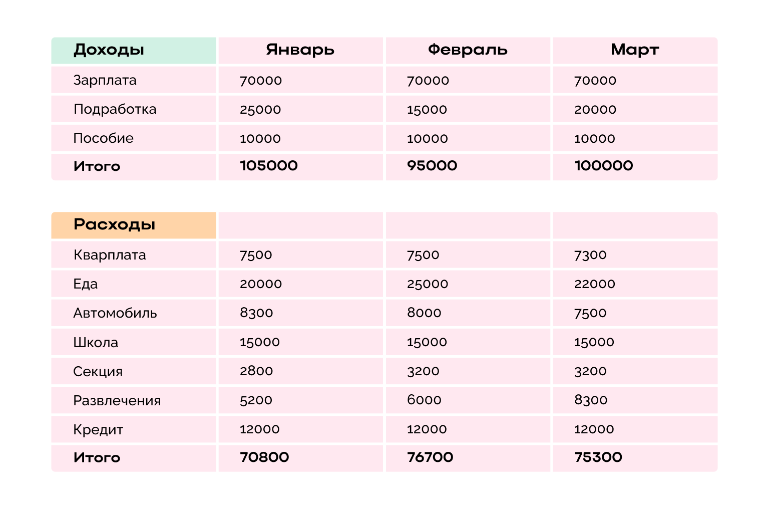 Эти данные помогут понять, какие расходы слишком сильно влияют на бюджет и от чего можно отказаться.